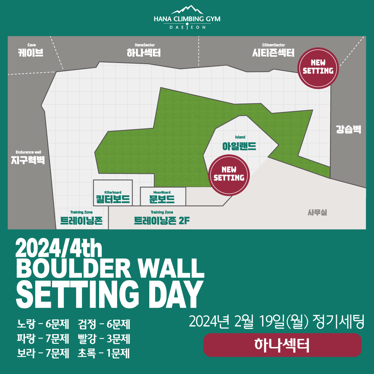 24년 네번째 정기세팅 및 스타터강습 일정 안내소식 전해드립니다.이번세팅구역은 시티즌섹터와 아일랜드입니다. 초보자분들이 기다리셨던 아일랜드도 오랫만에 새로 세팅되었습니다!! 이번세팅은 불맛이라는 세터들의 전언입니다????????????????