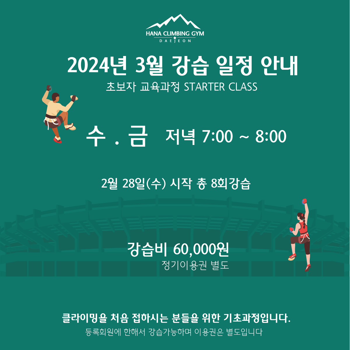 스포츠클라이밍을 처음 접하시는분, 초보자분들을 위한 스타터강습입니다.