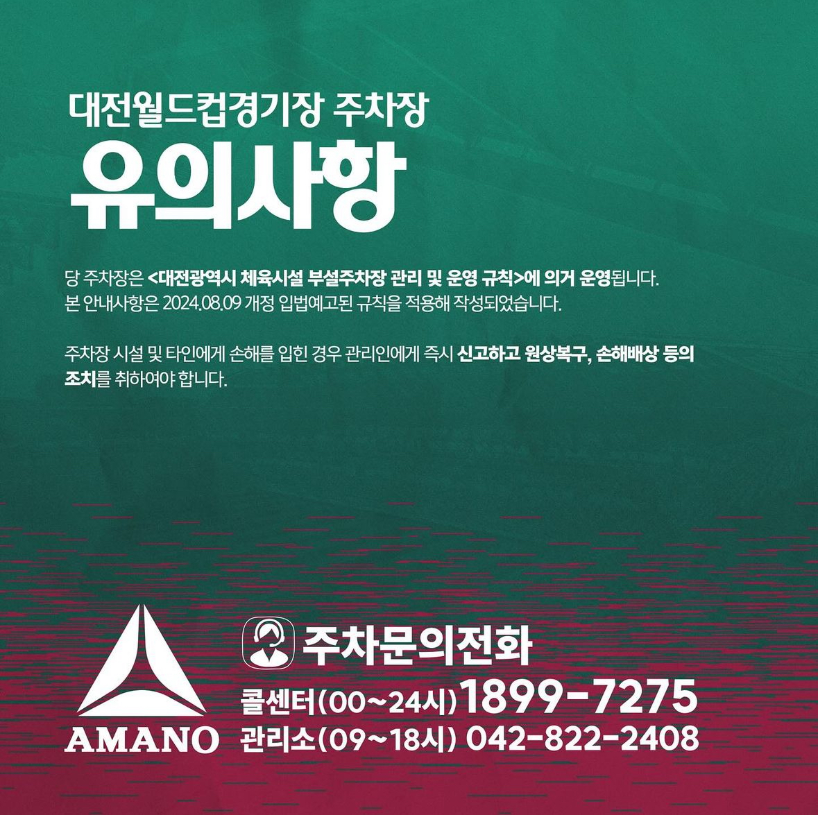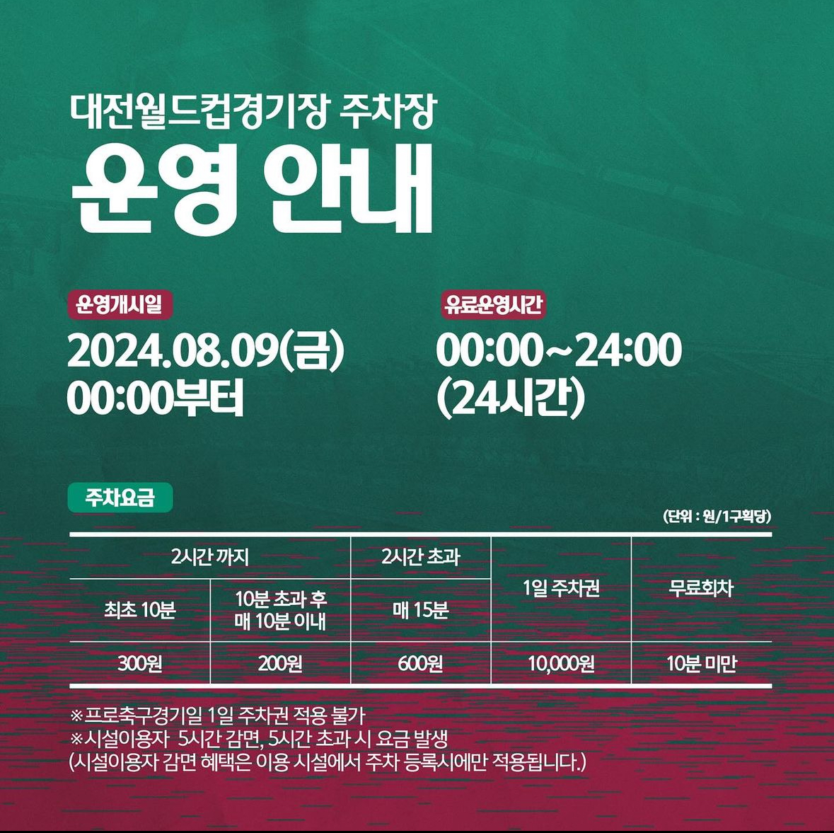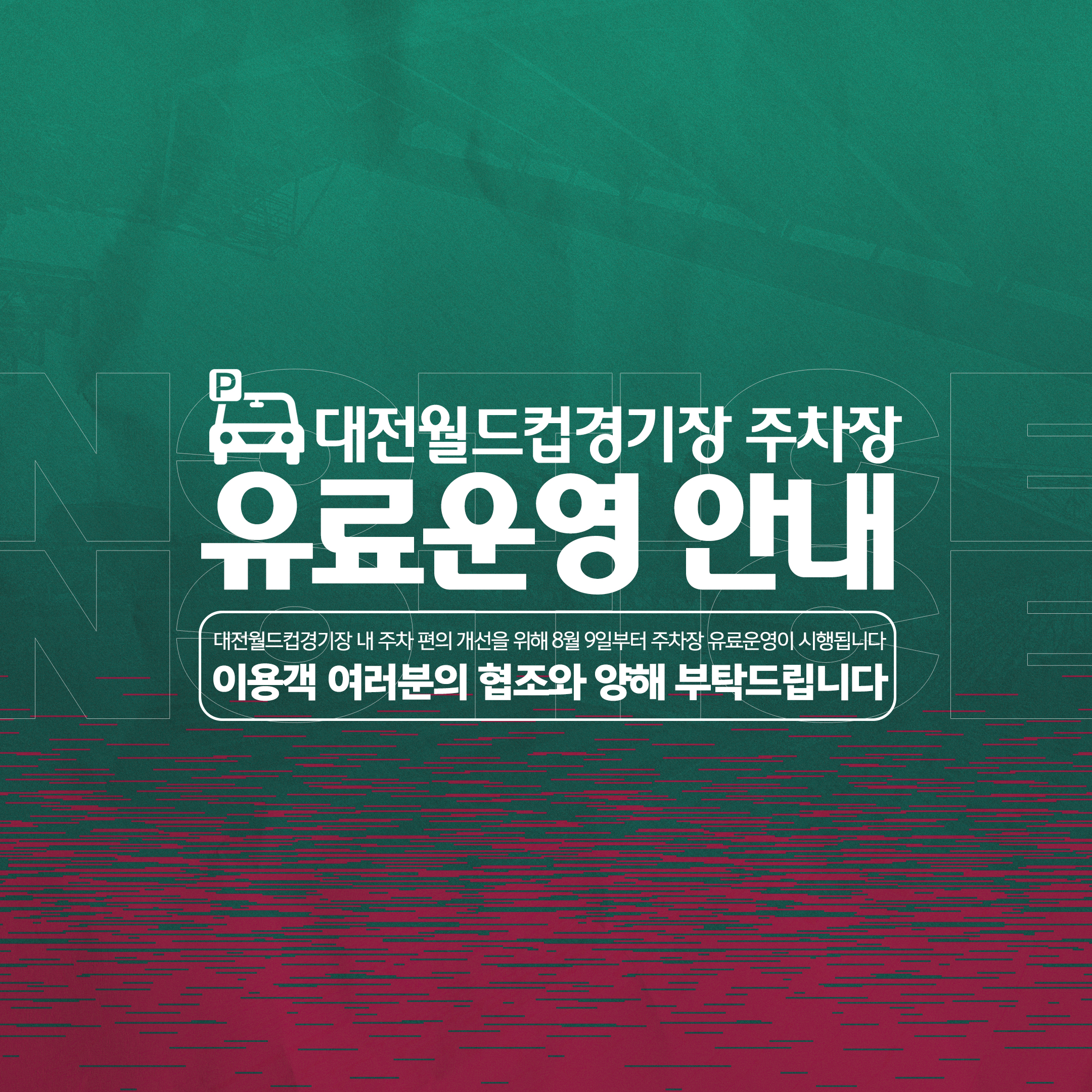 2024.8.9 (금) 부터 대전월드컵경기장 주차장이 전면 유료화 됩니다‼